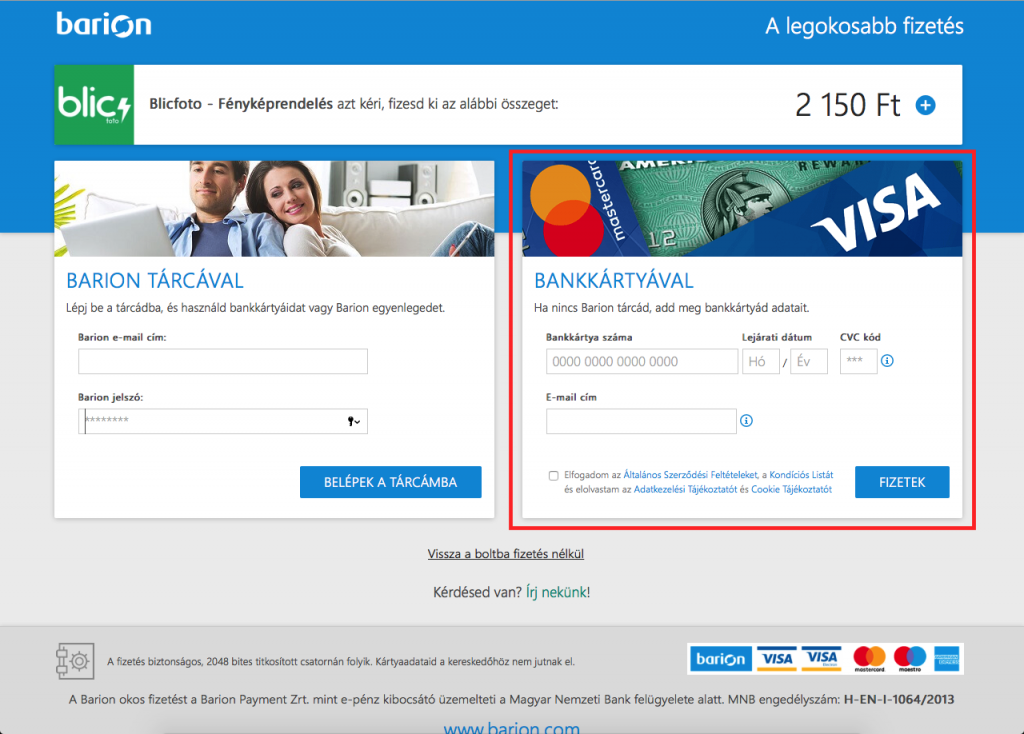 - Bankkártyás fizetés Barionnal